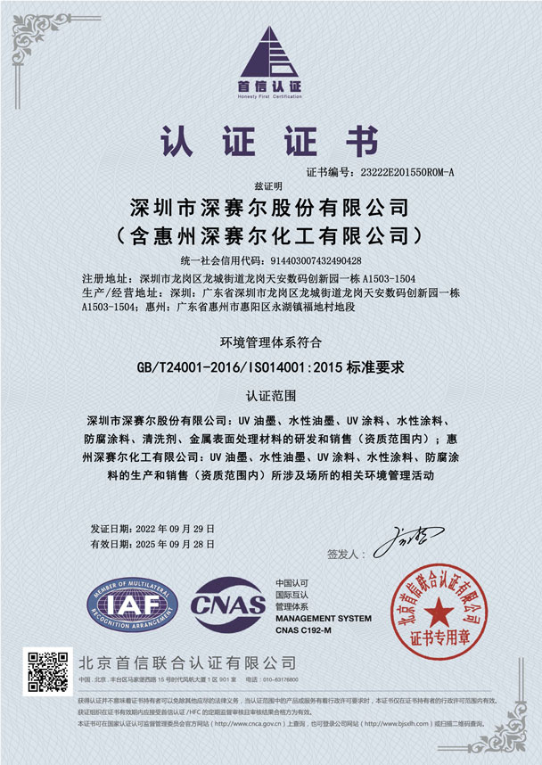 環境管理體系認證證書